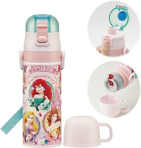 スケーター(Skater) 子供に優しい 軽量 ステンレス 2WAY 水筒 430ml ディズニー プリンセス 24 子供用 直飲み コップ飲み コップ付き ステンレス SKDC4-A サイズ:直径6...