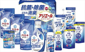 ■商品紹介:抗菌洗剤アリエールと、少量でたくさん洗える濃縮タイプの食器洗剤除菌ジェル、室内干しのイヤなニオイを防ぎ、ふっくら柔らかく仕上がる抗菌・消臭ソフターのギフトです。 ■商品内容:700gアリエールジェル・200ml除菌キッ
