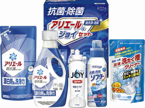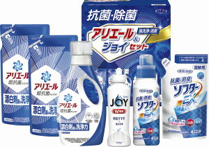 抗菌力に優れたアリエールに本格消臭の抗菌・消臭柔軟剤とW除菌の食器洗い洗剤ジョイをセットしました。 洗剤は、生活する上で欠かせない必ず使うアイテム。 もらって嬉しい、暮らしに役立つ贈り物の大定番です。 P&G 世界で約180か国の