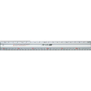 大工さんに便利な尺相当目盛付のアルミ製定規です。・裏面に滑り止めゴム付です。・カッター面に刃が食い込まない、ステン鋼付です。・長さ測定、線引き、カッティング、丸ノコガイド定規に。・長さ測定・線引き・マルノコガイド定