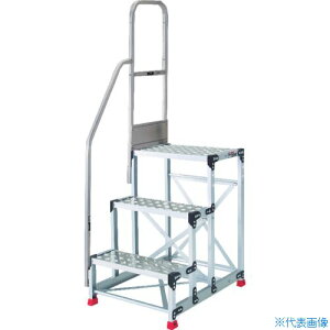 アルミ製作業用踏台 3段 高さ0.75m 天板寸法800×400 段高300mm 階段片手すり付き 〔品番:TSF389TK300〕[ 注番:5517251]特長●作業用踏台と階段片手すりのセットになります...