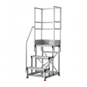 アルミ製作業用踏台 縞板タイプ 3段 高さ0.9m 天板寸法600×400 段高300mm 階段片手すり天場三方付き 〔品番:TSFC369TKS300〕[ 注番:5517285]特長●作業用踏台と階段片手すり天板三方付きのセットにな...