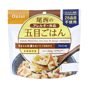 尾西のアレルギー対応五目ごはん(アルファ米)尾西のアルファ米は、炊きたてご飯のおいしさをのがさず急速乾燥したものです。肉や魚を一切使わない、野菜中心の五目具材たっぷりのまぜご飯です。メーカー型番 : 1901内容物...