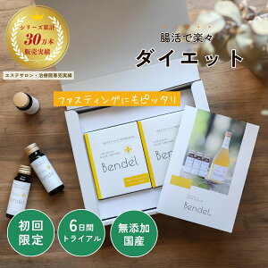 商品説明 まずは6日間のトライアルセットでお試し。送料無料でお届けいたします。 ミニサイズ50mlを6本セット。初回限り、お一人様一箱でお願い致します。 天然成分100%で毎日のスッキリ快調をサポートする「ベンデル酵素」。 厳選された