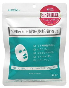 リニューアルに伴いパッケージ・内容等予告なく変更する場合がございます。予めご了承ください。 名 称 アロヴィヴィ ヒト幹細胞フェイスマスク 内容量 10枚 特 徴 ◆2種のヒト幹細胞培養液(※)配合のフェイスマスク。 潤いでハリや