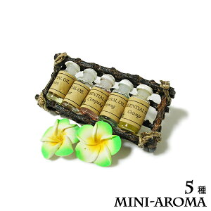 小瓶の中に詰められたアロマオイルのセット、5種入りになります。 お水やオイルポットに数滴垂らしたり、 ゆっくりとお風呂で楽しんだり。 お好きな香りをいろいろ試したい方にはおススメです。 ※商品によりオイルの内容が画像と異な