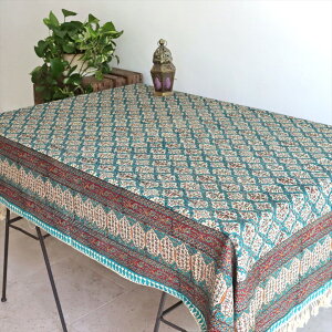 【*クスス雑貨 マルチカバー クロス アンティークレース ボタニカルフラワー イタワ織 ブロックプリント インド綿 エレガント ヨーロッパ 北欧 華やか ベッドカバー ソファカバー シングル コットン100%...
