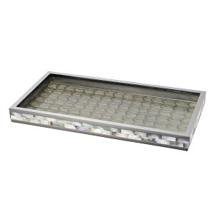 モザイクシェル ブラック オブ パール マルチトレー マザーオブパールの中でも希少なブラックカラーを張り合わせて作られた洗面シリーズ。 天然素材を手作業で加工しているため それぞれに模様や輝きなど、表情が異なるのも魅力の一つ