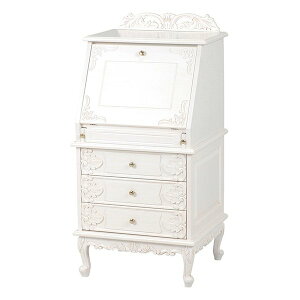 脚部や取っ手のデザインと細部までのこだわりを持ち、アンティーク感のあるホワイト色が可愛さと上品な印象を与えるコンパクトデスクです。天板下の引出しはA4ファイルや雑誌、ノートPCなども収納可能です。同シリーズのアイテムを合わせることで、...