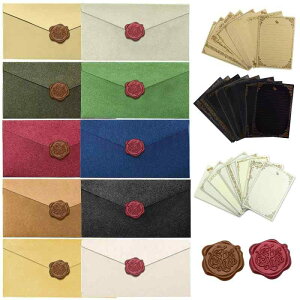 日常のニーズを完全に満たします。クラフト紙 シックなクラフト封筒キット - ヴィンテージの筆記用紙は印刷や手書きに使用できます。古紙 アンティーク風の紙 - ヴィンテージ封筒はシーリングワックススティックで封をすることができます...