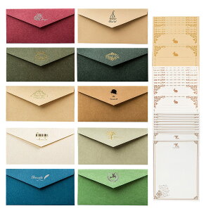 レターセット封筒 10色 便箋 24枚 手紙 おしゃれ クラフト用紙 アンティーク調 シーリングシール 手紙セット 便箋と封筒【セット内容】:封筒10枚、便箋(3カラー8種類)24枚、(2種類)2枚シールセット...