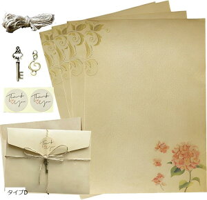 ■商品説明■ レターセット 封筒10枚 便箋20枚 手紙おしゃれ クラフト用紙 アンティーク調 メッセージカード 便箋 ラブレター 造花 お見舞い 誕生日 招待状 結婚式 お祝い手紙 お礼状用 (ベージュ)...