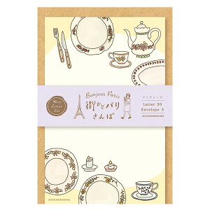 商品説明アンティークの食器をイメージした型抜きの便箋に、お花の装飾と金の箔押しをあしらった上品なレターセット。 便箋は陶器のようなマットな質感で、繊細なお花の線画がさりげなく映えるデザインです。 便箋の飾り枠と罫線には