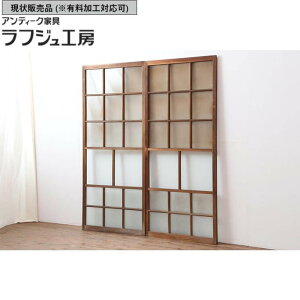 ※多少の誤差はありますので予めご了承ください。 時代 昭和中期 素材 木製、ガラス 説明 横桟だけの素朴な引き戸に、 銀モールガラスとモールガラスを入れたガラス戸です。 レトロな雰囲気