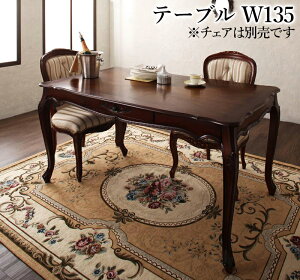 ヨーロピアンクラシックデザイン アンティーク調ダイニング◆ダイニングテーブル(W135)【サイズ】外寸:(約)幅135×奥行80×高さ73.5(天板下高59.5)cm引出内寸:(約)幅46×奥行30.5×高さ4.5cm【材質】...