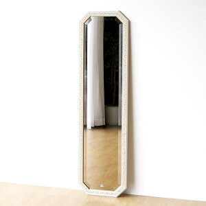 イタリアンなミラー ホワイトとゴールドのコントラストが エレガントでクラシックな表情の イタリア製のロングミラー 幅広の面取り加工を施した 厚みのあるミラーと 草花をモチーフにした 繊細な彫刻の木製フレームの組み合わせで...