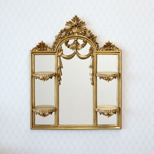 デコラティブな装飾が美しいウォールミラー。 イタリアの熟練職人がハンドメイドで色付けしたもので、アンティーク調の美しい仕上がりです。 本体には小さな飾り棚が付いているので、ちょっとした小物などもディスプレイできます...