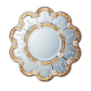 商品名ベネチアンスタイルミラー・ムラーノ【エッチングミラー オーバル:スカンディッチ・ゴールド】【送料無料】イタリア ベネチアミラー 鏡 壁掛けsize(サイズ)幅 56×厚さ 5.0×高さ 56cm(単位はセンチ)重さ5.0Kg素材...