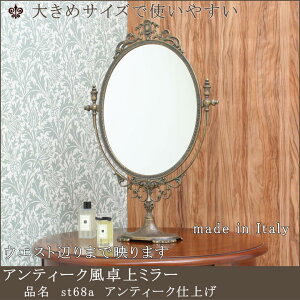 商品情報(真鍮製卓上ミラー 卓上鏡) 総幅37cm 総高57cm 鏡サイズ 横26cm 縦34cm 材質 真鍮(アンティーク仕上げ)3mm厚平面鏡 輸入先国 イタリア■鏡 ミラーのイメージキーワード 卓上ミラー 卓上鏡 デスクミラー...