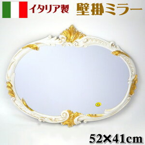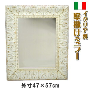 サイズ ◇外寸:W52×H41 重量1.5kg 素材 ◇樹脂 ◇イタリア製 アイボリーにゴールドで装飾されたアンティークスタイルの壁掛けミラーです。 ◇レリーフデザインがおしゃれです。 新築祝いなどにも最適です