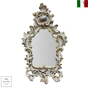 【メーカー直送品:宅配便発送(代引× 後払× 同梱× ラッピング× 対応不可)】 イタリアの有名な樹脂メーカーのウォールミラーです。 エレガントなアイボリーにアンティーク風の仕上げがされており、大人っぽい印象です。 彫刻風のフル