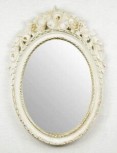 商品名鏡 壁掛け おしゃれ イタリアスタイル French Ribbon フレンチリボンアンティークホワイト色 ウォールミラー(オーバル)size(サイズ)幅 39×奥行 3×高さ 36.5cm(単位...