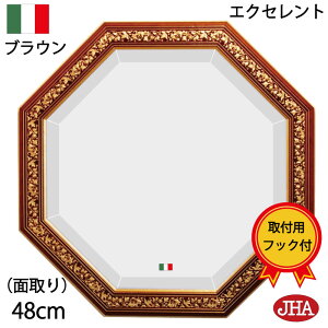 【クラッシック・JHA風水ミラー】[正八角形]何だか〜見ていて楽しくなる 【アンティーク】イタリア職人の木製ハンドメイド品です。 【外枠サイズ】 (幅)36センチ×(高さ...