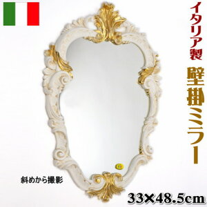サイズ ◇外寸:36×56 重量1.6kg 素材 ◇樹脂 ◇イタリア製 アイボリー+ゴールド色でペイントされたアンティークスタイルの壁掛けミラーです。 ◇レリーフデザインがおしゃれです。 新築祝いなどにも最適