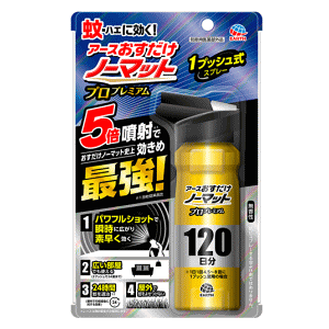 北海道・沖縄・離島へのお届けは別途送料がかかります。詳しくはこちら1日1プッシュ! 効果が素早く広がり長時間蚊を駆除。速く効く! 長く効く!軽いので持ち運びにも便利です。●用途:蚊の成虫、ハエの成虫●香り:無香性●内容量: