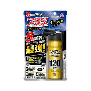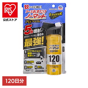 商品説明 アース製薬 おすだけノーマット スプレータイプ プロプレミアム 120日分125mlは強力5倍噴射(当社従来品比)のパワフルショットで薬剤が瞬時に広がり、蚊を速攻駆除します。時間効果があります...