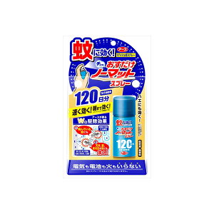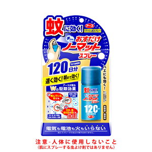 製品名:おすだけノーマットスプレータイプ 内容量:25mL(1日1回使用で約12時間有効 120日分) 有効成分:トランスフルトリン(ピレスロイド系) 効能効果:蚊成虫及びハエ成虫の駆除...