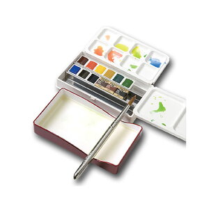 パーム(手のひら)の意味する通り、持ち歩くための工夫が凝らされたセットです。水彩筆を収納し、小さく軽く、また高級感あるピュアレッドのケースカラーがオシャレです。水彩筆付き【セット配色】・パーマネントアリザリンクリムソ