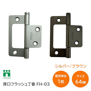 商品詳細 メーカー 株式会社ニシムラ / ARCH 商品名 鉄フラッシュ丁番 品番 FH03-64 サイズ 64mm カラーバリエーション シルバー(S) / ブラウン(BR) 材質 鉄 特長 芯棒抜き差しが可能なルーズピンタイプです...