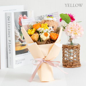 手編みのお花とクマのブーケ 【商品内容】 毛糸の手編みで作られたお花のブーケ 家庭を築く・家族円満の象徴として人気のクマさんのピック付! ★ご希望のカラーをお選びください 1.レッド 2.ピンク 3.イエロー 【サイズ】 高さ 約24...