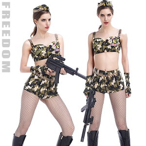 ■■コスプレファッション■■ セクシー迷彩アーミーコス! ★へそ出しセクシーなビスチェ&ショーパンスタイル!大人気迷彩柄アーミーミリタリーコスチュームです♪ ★トップスはパッド縫い付けです。生地は上下とも伸縮性があります