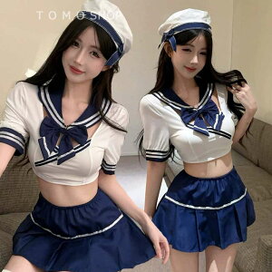 即日出荷!(商品名は衣類)中身がわからない梱包でお届け この水兵コスプレ衣装は、白と紺色の配色が特徴で、セーラー襟が付いた半袖タイプのデザインです。帽子もセットになっており、全体的に海軍の雰囲気を醸し出しています...