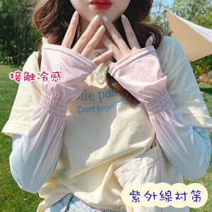 指先から二の腕まですべてカバーできる。窮屈感が苦手な方や、ゆったりと着用したいときに嬉しいデザイン◎接触冷感素材で暑さも和らぐ。屋外でのサイクリングや、運転、通勤通学な