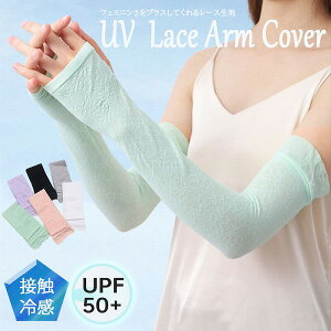 フェミニンさをプラスしてくれるレース生地UVレースアームカバー■・UPF50+で紫外線からお肌をしっかり保護します。・接触冷感で暑い夏も涼しく快適なつけ心地。・手の甲まで覆うデザイン。・フェミニンさをプラスしてくれるレース生地