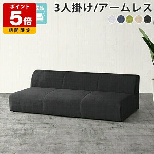 アームレス ソファ 3人掛け ソファー 単品 グレージュ 洗える カバー付 天然木 ローソファ ポケットコイル
