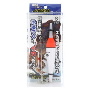 誰でも簡単シンプル仕掛け。冷凍アジでもイカが釣れる!ITEM INFORMATIONサイズSセット内容LED電気ウキ3号、イカフック、ウキ止め糸、シモリペット使用電池リチウム電池BR435 2本 (別売)イカ...