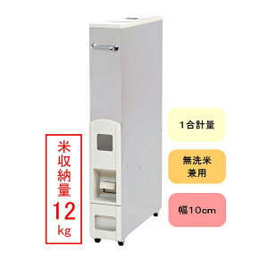 米びつ 10kg用 ライスディスペンサー 12kg 計量カップがなくてもレバー1つで計量できる、スリムタイプのライスディスペンサーです。幅はわずか10cmなので、キッチンのちょっとした隙間やシンク下、棚上などにすっきりと収納ができます。キ