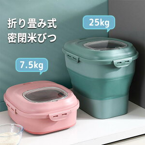 【折りたたみ式、5kg〜25kg】【スリム】【密封性シールリング】【クリア小窓付き】折りたたみ式で、5kgから25kgまで収納できます。お米の量が減ったら、折り畳んで省スペースになります。置き場に困る米びつを引き出し内で収納できます。