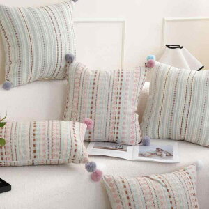 クッション レディース 北欧風 フェアアイル柄 ストライプ ソファ クッションカバー 腰当て 背当て 綿麻 白桃 ピンク系 アイスブルー 45×45cm 30×50cm・商品カテゴリ: クッションカバー/抱き枕カバー・素材: 綿麻・柄...