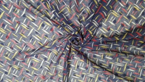 【お値打ち商品】イタリア製輸入生地【AGNONA/アニオナ】薄手のウール 毛100% 150x120cm 15−2 透かしの水玉模様のある濃紺の地色に白と赤と黄色の線の柄 スーツ、ワンピース、スカートやジャケットに...