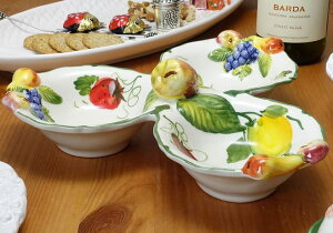 【メーカー直送品:宅配便発送(代引× 後払× 同梱× ラッピング× 対応不可)】 フルーツの飾りが可愛いセパレートボウルです。 3つにわかれた楽しいボウルで、ナッツやお菓子を入れたり、ソースやディップ入れにしたり、様々なシーンで