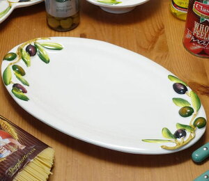 同梱× ラッピング× 対応不可)】 オリーブのデコレーションが可愛い楕円皿です。 パスタプレートにしたり、オードブルなどの盛皿にしても素敵です。 鮮やかな色使いが印象的。 もちろん熟練