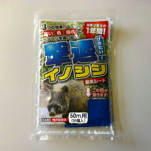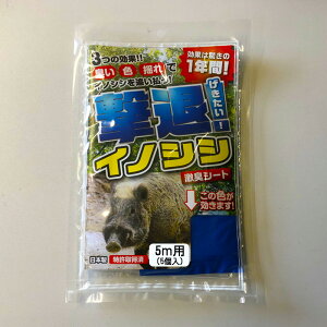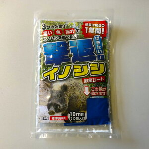 3つの効果! 臭い、色、揺れでイノシシを追い払う! 特殊なマイクロカプセルに入っているので効果は驚きの1年間! 簡単な設置で効果は長期間持続! 10種類の天然植物を配合した刺激臭でイノシシを寄せ付けない! 青色を嫌うイノシシの習
