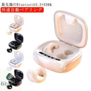 Bluetoothイヤホン 「イヤーカフ」型イヤホン 完全ワイヤレスイヤホンbluetooth 5.3 マイク付き 骨伝導イヤホンより快適 耳を塞がないイヤホン 耳挟み式/自動ペアリ