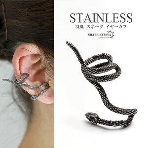 【商品概要】 ■ITEM DETAIL とぐろを巻く蛇を模した大胆なデザインのイヤーカフ。燻し風のブラック加工が映えるアイテム。耳に引っ掛けるだけで装着が可能です。 ■316Lサージ...