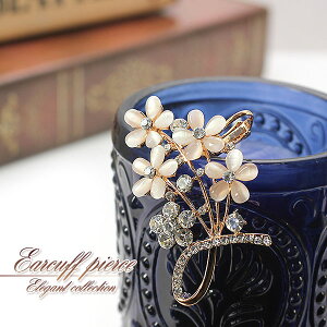 キュートなフラワーのイヤーカフピアスです。 クリスタルとキャッツアイ(シンセティック)が華やかです♪ ■商品詳細 商品管理番号:sl-1290 サイズ:全長:44×16...